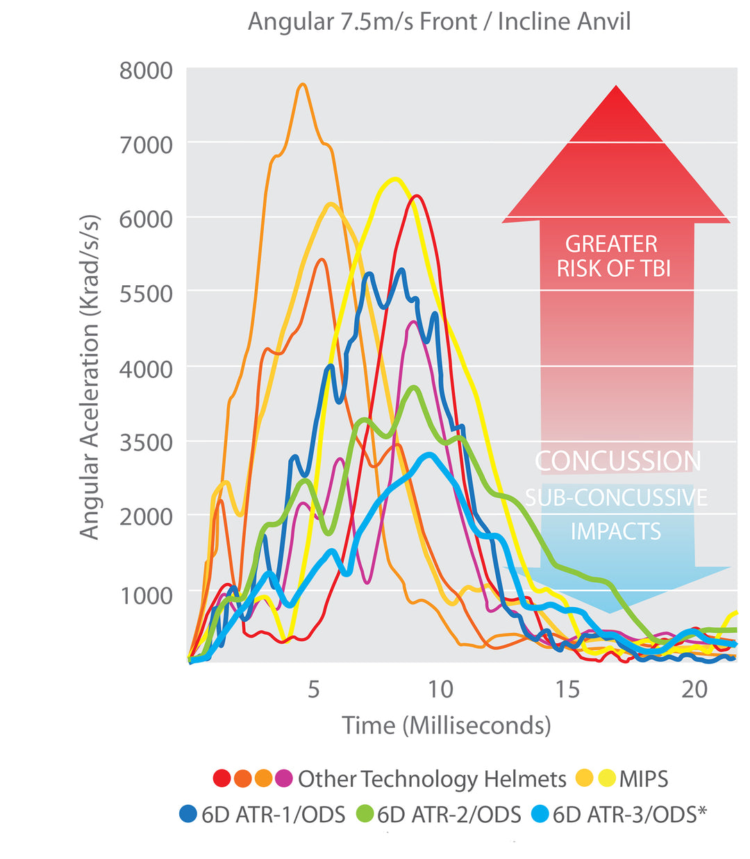 A root cause to brain injury and concussion. Angular acceleration is generated from angled impacts to the helmet’s surface resulting in shearing, tearing and bruising of the soft tissues within the brain.