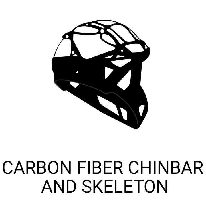 The carbon fiber and polycarbonate two-piece shell, featuring a carbon fiber chinbar and internal skeleton, provides overall structural integrity and enhances the chinbar's durability in high-velocity impacts.